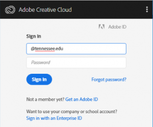 If patrons need to edit, they must right click on the desktop saved chrome link, and select “Open with Adobe” or “edit with Adobe Acrobat”at which point they will be prompted to sign in to the Adobe ID page shown in image #1. Enter @tennessee.edu and sign in with no password. This will prompt for UT Enterprise ID login image#2 where patrons will enter their UTC ID & password.